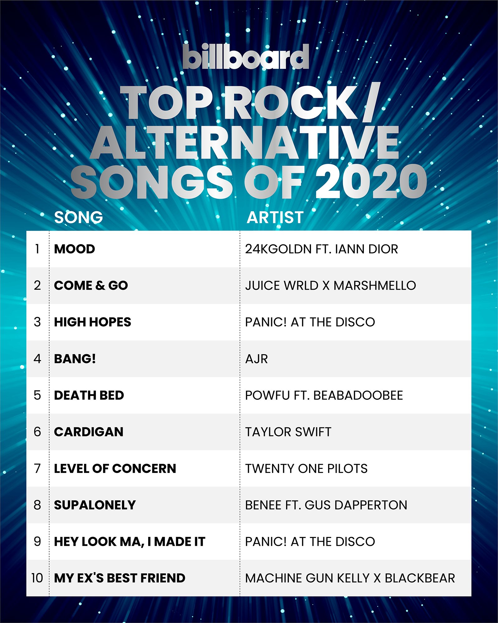 Best alternative rock songs of the '90s. For a song to be listed below it must have a release date no older than two weeks from the current date and it must rank among the top 200 best selling alternative songs. Stream our playlist of the 95 best alternative rock songs of 1995. With best music band of 2000s. See billboard's rankings of this year's most popular songs, albums, and artists.